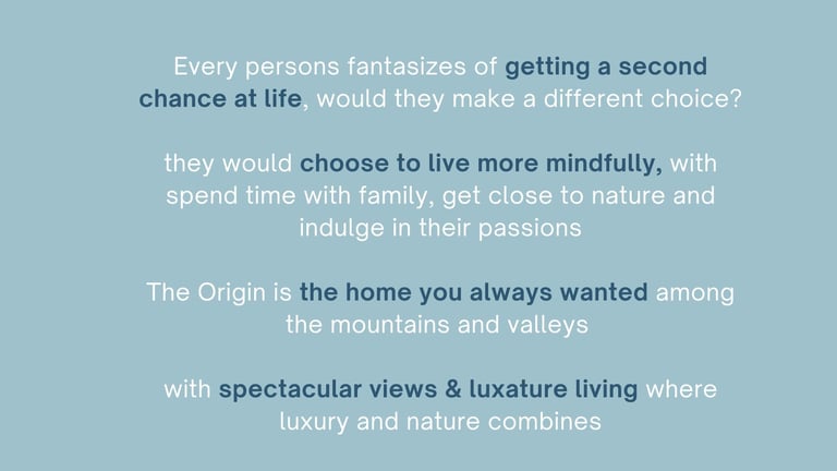 The need was for a premium mountain property that goes beyond land ownership and delivers a complete lifestyle. The positioning of the campaign builds on the age-old question: “If I had a second chance at life, how would I live it?” The project answers this by offering the opportunity to live slower, healthier, and closer to nature—through branded luxury living amid mountains, spectacular views, curated amenities. For weekends, retirement, or renewal.